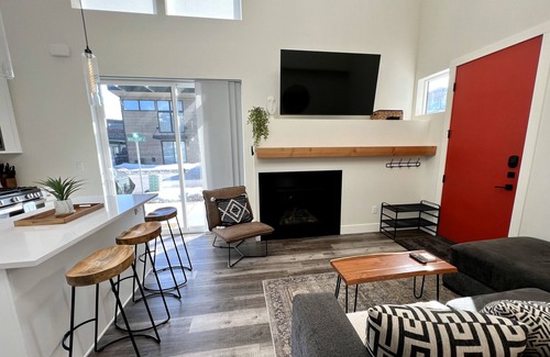 With one of the best views of WF Mountain Resort in the Quarry Townhome development, settle into this cozy unit just 20 minutes from the base loge and 5 minutes to quaint downtown Whitefish!. Built in 2021, this 2 bedroom, 2 full bathroom open floor plan Townhome includes a gas fireplace, kitchen island, soaking tub, smart TV, washer & dryer, locked ski gear storage closet, 2 walk in closets with ample storage for personal belongings, and a fully equipped kitchen great for multifamily reservations and long term stays! The unit welcomes up to 6 guests (king bed, and queen over queen bunk bed in second bedroom). Don't forget about all of the amenities guests can indulge in with access to the Quarry Development's Clubhouse - out door hot tub (available all year), outdoor pool (seasonal access only in the summer months), outdoor fire pit and tables, fitness room, clubhouse, game room, tables for remote work, Wifi available, kitchenette, and men's and women's locker rooms.