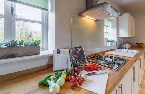 The spacious sitting room with its gorgeous wood burning stove, wooden floors, squashy sofas is just perfect for curling up with a good book on an evening with a glass of something lovely. Combine this with the well-equipped social kitchen which is ideal for cooking up a treat, and you won't want to leave. With a large oak dining table with seating for eight, long supper's discussing the events of the day await. If the nights are light and warm, then the fully enclosed courtyard garden offers alfresco dining too. Upstairs you'll find four stylish bedrooms; two king-size, one with an en-suite and two singles (both singles with pull-out truckle beds beneath for children, allowing the property to sleep six adults and two children when required). With comfortable beds, crisp linens, cushions and throws, you are assured of a good night's sleep. Outside there is a small fully-enclosed paved courtyard area with outdoor table and bench seating, and an additional small garden area with a bench across the lane.