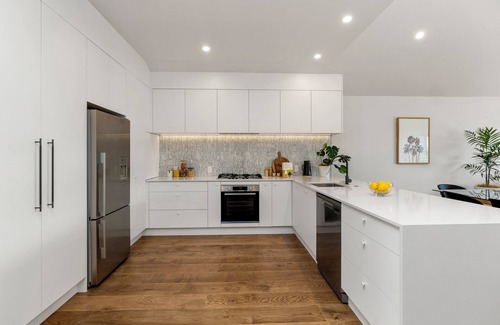 The property is just steps from the Devonport ferry terminal, providing a quick 12-minute ride to Auckland CBD. Local buses are nearby for easy access to surrounding areas, and the neighborhood is pedestrian-friendly, perfect for walking or cycling.