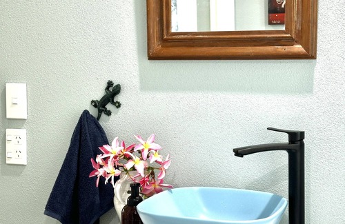 Ideal for the solo traveler, couple or couple with up to 2 small children, the cottage is close to town, adjacent to a family home, safe and secure, has screens on all the windows, ceiling fans, off-street parking and a bus stop right outside.