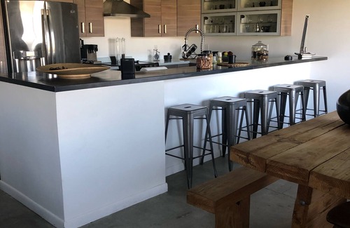 Come experience contemporary living on the Colorado River, where you can unwind and relax at Arizona’s premier gated community. Centrally located this newly remodeled 2 bdrm/2 bath condominium on the water, is just minutes from stores, restaurants and Laughlin Nevada casinos. When first entering the unit will be wowed by the open spaced, unobscured views of the Colorado river. The main living space, living room, dining room and kitchen are designed for entertaining and maximizing river views. Step out onto the decking of the spacious 6’x40’ outdoor balcony. Fully equipped with bbq grill, sofa, tables and seating area. Relax and enjoy the incredible views, sounds and smell of the Colorado River, surrounding landscape and variety of amazing wildlife. In this uniquely designed unit enjoy curling up on the large down feather sectional in front of the wood burning fireplace. A large flat screen tv with internet, WiFi and Bose surround system are provided for your pleasure. In the dining room the table easily seats 10 people. A large wall chalk board lends its self to a fun night of games. Along side the kitchen a long counter/bar space seats 5 additionally. The kitchen boasts a wine bar, coffee bar, dishwasher drawer, microwave and a large capacity stainless French door refrigerator. With tons of storage it comes complete with everything you need for entertaining or just a quiet night in. Various small appliances toaster, crockpot, fondue’s, cook and bake ware, utensils, dishes and spice pantry. With a full bar find everything you need to make that favorite cocktail. Down the hall a double door storage and laundry closet store a large capacity front load stackable washer and dryer. The two spa inspired bathrooms are complete with luxury towels, spa robes and slippers, great for when your headed to the hot tube. Pool/ beach towels are provided as well. The master bedrooms king size mattress is dressed with luxury linens and bedding to maximize your comfort, a large his and her closet, large full motion flat screen smart tv and portable Bose system are provided. The smaller guest rooms queen size is also dressed with quality linens and bedding for that great nights sleep. A large closet and flat screen smart tv provided. A large wall to wall bookcase complete with various books and magazines are provided for your reading pleasure. Outside take advantage of that beautiful Arizona weather. With our private marina on the river you can enjoy swimming, fishing, jet skiing. Kayaking or boating. A private boat slip is available for an additional fee. Enjoy meeting and making new friends at any of the private four pools or three spas within the gated complex. No pets allowed in this non smoking unit. Thank you for viewing my property.