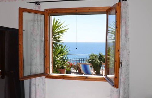 The vacation apartment Casa del Sole is located in Cipressa, in an incredible panoramic position with free all-round sea view. In front of the apartment is a large, sunny south-facing terrace with covered dining area and sun loungers.