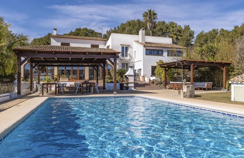 Comfortable villa in Javea, on the Costa Blanca, Spain with private pool for 8 persons. The house is situated in a rural and wooded beach area. The villa has 4 bedrooms and 6 bathrooms, spread over 2 levels. The accommodation offers privacy, a wonderful lawned garden with gravel and trees, a wonderful pool and beautiful views of the valley. Its comfort and the vicinity of the beach, sports activities, entertainment facilities, places to go out, sights and culture make this a fine villa to spend your holidays in Spain with family or friends and even your pets.
