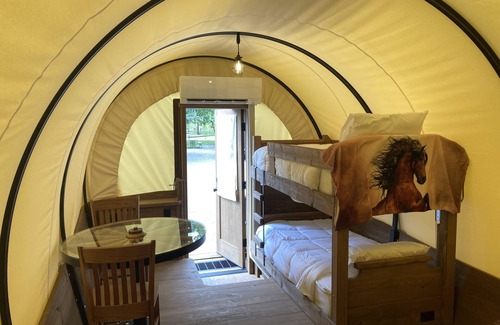 Conestoga Wagons carried settlers westward, now you can experience the same in a rustic yet more luxurious setting.