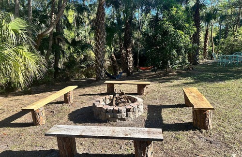 Enjoy time outdoors on this 1 acre property directly on the Loxahatchee River. Paved deck has a picnic table for enjoying family meals or playing games. Charcoal grill includes complimentary charcoal for outdoor cooking, or make a meal over an open fire at the fire pit! Bring your own kindling or purchase a bundle onsite for $10/bundle. Sit by the river and toss in a fishing line or just relax and take in nature at its finest. The outdoor space also provides fresh organic grow boxes from Urban Abundance that include lettuces, vegetables, and herbs (SEASONAL)--help yourself when available!
