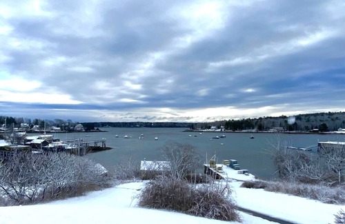 This unique cottage is a contemporary Acorn design dome house on a dead end private road overlooking Round Pond harbor and islands beyond. The house has a queen master bedroom, two twin bed second bedroom and a private den with a twin sofa bed. The design of the house is an open concept with lots of sunlight and a spectacular deck. The house is fully equipped with bed linens, towels, complete kitchen, washer and dryer, WiFi and flat screen TV. There is a town dock in Round Pond where guests can swim and access boating. Nearby islands afford great kayaking adventures and beach access.