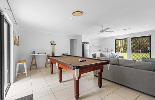 Escape to our spacious and peaceful country home, perfect for relaxing with family and friends. Just a 7-minute drive from the beach, you can enjoy the tranquil surroundings, watch the local birdlife, and maybe even spot a kangaroo. Located only 4 minutes from Coolum Aqua Park, 14 minutes from the airport, and less than 20 minutes to Noosa Heads.