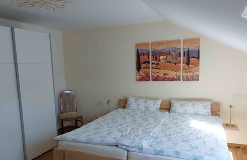 The flat is located in a picturesque village called Herzberg/Pöhlde and promises unforgettable holiday moments. The accommodation on the first floor includes a spacious living and dining room as well as a fully equipped kitchen where you can prepare delicious meals. The cosy furnishings create a warm and inviting atmosphere that will make you feel right at home. In summer, there is a cosy seating area next to the house surrounded by plants and flowers where you can relax and end the evening with a barbecue. The landlords live in the same house and will be happy to help and advise you. The surroundings of Herzberg/Pöhlde offer numerous possibilities for leisure activities. A cycle path nearby invites you to go cycling, and the picturesque landscape with fields and meadows in the immediate vicinity is perfect for long walks, whether alone or with your pet. Excursion destinations nearby are: Unicorn Cave, Scharzfels Castle Ruins, Herzberg Castle Museum, Wurmberg Cable Car, Worbis Bear Park, Harz Treetop Walk.