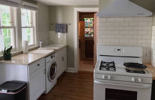 Dedicated wifi and apple TV for entertainment. Heated and Air conditioned. Easy street parking. Enjoy views of the garden from your own patio or morning sunshine on the side patio. Read a book in your private covered porch or relax with a drink in the living room. You have a perfect place for quiet focused work at the desk.