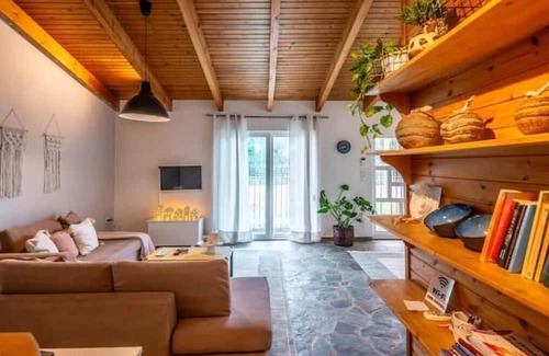 Spacious, bright ground floor house of 65sq.m. in a quiet and family environment with nice garden. There is one bedroom with double bed and A\C, one bathroom with shower, kitchen with all necessary electrical appliances( fridge, stovetop, kettle, coffee maker, toaster) dishes and cooking utensils .