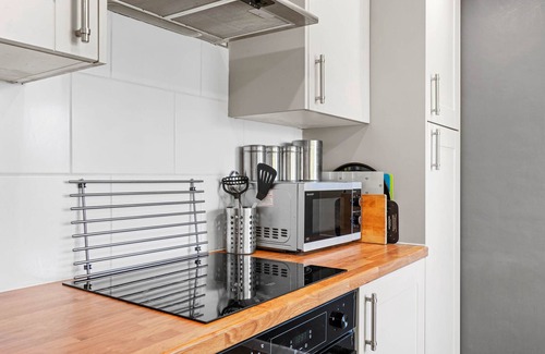 On the ground floor, there is a lovely kitchen filled with the utensils you need during your stay in this self-catered property including a cafetière.