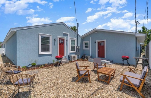 Adorable 3 Bedroom, 2 Bath Cottage (SuiteC -Sleeps 8) LOCATED 320 Yards from the BEACH. Enjoy this completely remodeled home that Boasts Modern Kitchen with SS Appliances & Granite Counters along with Living room with Cathedral Ceilings & Fire place. Central Air, WIFI,Washer/Dryer & all your basic necessities. Enjoy your Patio with Charcoal Grill-- Golf Cart Friendly too! Centrally located & minutes to restaurants, local shopping & activities. Snow birds welcome! We do allow 1 small dog that is 25 pounds and under. This is the only type of pet allowed. (NO CATS- Host is severely allergic)