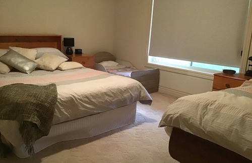 Brick house on 5 aces. 3 bedrooms, 2 bathrooms, fully furnished. Sleeps 12 plus baby bed. Lovely and quite. Large out door entertainment areas with table tennis table, bbq, plenty of children’s indoor and outdoor entertainment, and space to run. Free internet with big T.V. Walking distance to Edward River and boat club. Five minutes from town shops, restaurants, museums and supermarkets.
