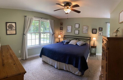 Come take a winter getaway in idyllic Litchfield County. A winter and spring resting place, a sanctuary in the quiet woods of Bethlehem, CT. Peaceful tranquility, surrounded by 60+ acres of wooded serenity and nature. Perfect for a writer’s retreat, a space to call home while enjoying close proximity to CT, MA and VT ski resorts. Beautiful country home in quiet, wooded setting. Accommodates up to 6 people comfortably. First floor master suite with king bed, living room with large stone fireplace/wood stove, second queen bedroom upstairs, as well as additional guest room/office space/family room. Rent includes all utilities, driveway snow removal, and wood for the wood stove. Just bring your winter fun gear. Willing to consider pets. Limited dates (see calendar)