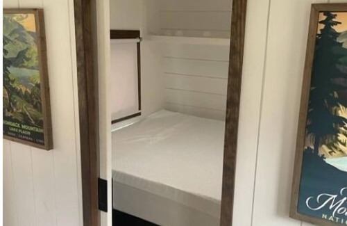 Make yourself at home in Gardiner, Hudson Valley. Nestled in a tranquil setting, this mobile home offers a serene escape for guests. With 1 queen bed and 2 twin beds, it provides excellent comfort for a relaxing stay. Stay connected with WiFi and enjoy the cool breeze of the AC. The bathroom is well-equipped for your convenience. Experience the magic of Gardiner at our mobile home.