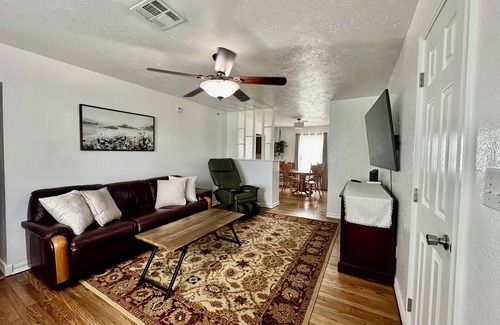 This 1950’s home away from home is close to downtown Norman. Featuring two bedrooms with queen beds, living room with sofa bed, kitchen, laundry, dedicated workspace, and outdoor space for furry friends. The EV charger is convenient for electric vehicle travelers. We'll be available to answer any questions while you stay at The Bella Mae House.