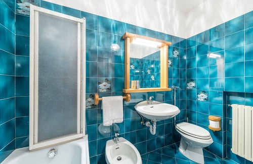 This cozy apartment is located 5 minutes walk from the pedestrian area, the center of Cortina and 50 m from the ski bus / bus stop. The apartment is on the ground floor, finely furnished in the Ampezzo style, consisting of a bright living-dining room (with sofa bed), equipped kitchen with 4-burner stove, fridge-freezer, dishwasher, washing machine, oven, microwave, all pots and dishes necessary for the table, a service with sink, bidet, toilet, tub / shower, 2 bedrooms - one double (possibly you can add a cot) and one with two beds, a closet (with an emergency bed) . The living room overlooks a garden with a small bench and fountain overlooking the Tofane. The apartment is equipped with a color TV with digital terrestrial, iron and ironing board, hairdryer, hand blender and vacuum cleaner.