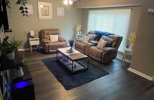 Escape to this house in picturesque Florissant. This wonderful home features 3 bedrooms, including 2 full beds and 1 full bunk bed, that can sleep 6 or more comfortably. Perfect for traveling healthcare & professionals with families or groups for work assignments. With 2 bathrooms equipped with a bathtub and hair dryer, guests can relax and unwind after a day of working. The house also offers amenities like Central Air & Heat, WiFi, washer/dryer combo for your convenience, electric fireplace, waffle maker, toaster, coffee maker, microwave, cookware, and all your eatery accessories to create wonderful meal experiences for the chefs at heart during the stay. We bolster a family & pet friendly environment for our guests.