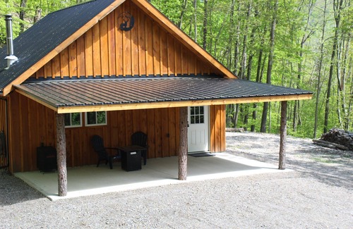 Escape to this cabin in picturesque Hornell. This cozy retreat offers a tremendous living room with a futon for extra guests. The bedroom is gorgeous and perfect for a peaceful night's sleep. With WiFi and AC, guests can stay connected and comfortable. An amazing bathroom awaits for a refreshing shower after a day of exploring. Enjoy a campfire or catch and release fishing. This is a beautiful ride to Talls Pines. This is great place to stay for parents visiting their kids at Alfred University or Alfred State. Feel free to reach out to us during your stay - we're happy to suggest local spots to check out. This cabin getaway is less than 10 miles from Talk pines atv park and both the colleges in Alfred.