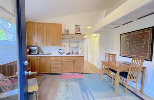 The kitchen offers Peet's coffee for pour-over coffee brewing, a selection of tea's, along with natural sugar, stevia or splenda. Cooking in the cottage kitchenette is made easy by an induction cooktop, a full set of pots/pans, a Cuisinart toaster oven for minimal baking needs, and a microwave .