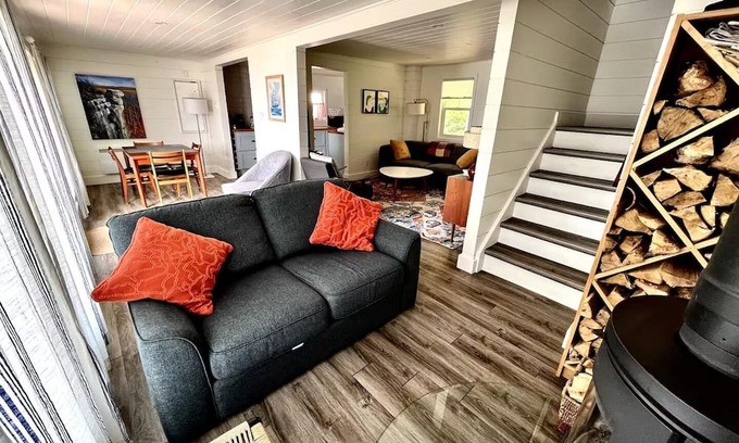 Our cottage is newly updated in a modern Danish mid-century style. Cozy and comfortable, you will enjoy floor-to-ceiling views of the bay from any seat on the main floor. Our kitchen is fully stocked with all the dishes, cookware, and glassware you might require to host a small gathering of friends and family. All bedrooms have comfy beds and big windows with waterfront views. We promise you a relaxing and recharging stay in the heart of Grey Bruce County. Please note that the cottage has about 12 flagstone steps down to the cottage.