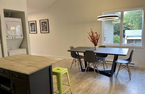 Restful 3-bedroom home in the woodsy Catskill region with spacious yard, a 15-minute drive to downtown Woodstock, Saugerties, or Palenville, with wifi for work-from-home. Bright and simply outfitted space with modern minimalist vibe so you can make yourself at home. Deck, screened porch, and fire pit – ideal for relaxing outdoors. Fifteen minutes to a selection of Catskills peaks, gorges, and wilderness. After skiing, biking, hiking, socializing or sightseeing, enjoy a hearty meal prepared in the spacious kitchen or at one of many area restaurants. Settle down after a long day with a movie or board game.