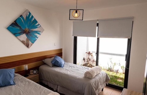 Casa Stella is a cozy and charming new house with three bedrooms and two bathrooms. It boasts a fully equipped kitchen, an interior patio, and two terraces. The first terrace, located in front of the main room, offers a stunning view of the volcano and is perfect for enjoying a cup of coffee in the morning. The second terrace, ideal for watching the sunset after exploring La Antigua or climbing the volcano, is the perfect place to barbecue and share drinks with friends. Casa Stella is located in a secure and quiet gated community that ensures safety. It is surrounded by green trails and cobbled streets that are ideal for walking your furry friends. The property also offers access to a shared pool, just 50 meters from Casa Stella, that kids will love while you can relax in the jacuzzi.
