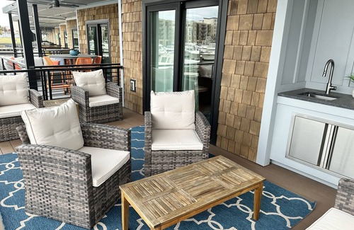 Beautiful open layout with 2 bedrooms and 2 full bathrooms. First floor includes full kitchen, dining room, living room, one of the bedrooms and full bathroom that includes a washer and dryer. The second floor includes the master bedroom with a full bathroom and additional living room with sectional couch that includes a pullout queen sofa bed. The views from the spacious second floor outdoor patio (with retractable privacy fence) with sink and mini fridge and comfortable seating will have you planning your next visit. We are in a premier location with direct views of the Cape Fear River and the yachts in the marina.