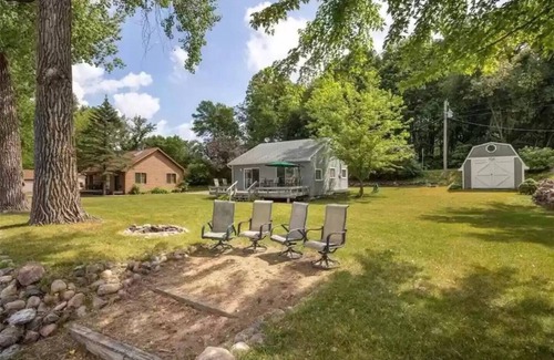 Less than an hour from Mpls. Lake front cottage on Lake Ann. 3 bedroom 1 bath & a loft open to living room below w/4 twins. Water toys, yard games and a fire pit for the gorgeous sunset views. QUIET lake that is stocked yearly with fish, so bring your fishing gear! You can follow @frogcottagemn *Cabin has been updated & appears “modernized”, it is still very much a cabin. Water tank & septic, so must be conservative w/water & flushing (only tp)