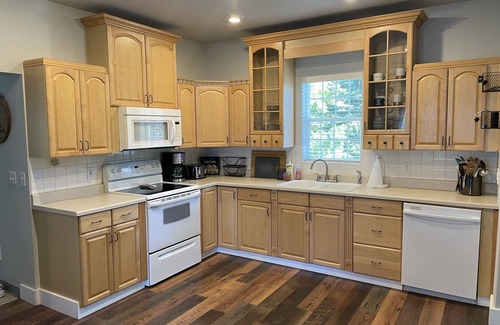 Relax with the whole family at this peaceful St. Joe River home just outside of St. Maries, Idaho. Minutes from mountain trails and seasonal hunting, enjoy the St. Joe River with private dock access steps from the front door. This home features a King and Queen bedroom and additional sleeping for the whole family in the air conditioned bonus room. The fully equipped kitchen has everything you need to prepare your favorite meals. Wifi access and Roku TV available for guests.