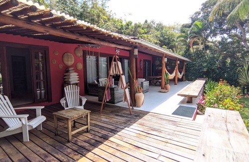 Marcia who were born and live in the village until today Curuípe is the true name of this beach with a fancy name (Mirror beach) this house has its natural charm and the comfort that meets your needs. House located in the fishing village on the beach of Curuípe (Mirror) is among the 9 extractive reserves of the Corumbau navy. The house has 2 suites, one with whirlpool, 3 bathrooms all rooms have air conditioning and fan, laundry, internet, and is located near the beach, with privacy, garden, with exclusive mirante a suite with sea view, attractions tourist attractions such as diving, boat ride, taxi (boat, car) services of house, near the condo Outeiro Das Brisas.