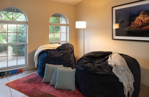 Super cute 3 bedrooms & 2 baths in quiet family area with brand new expanded patio with private Hot Tub, shady hammock, and all the comforts of home! Owned by local area photographer who’s beautiful images of Sedona and the Southwest Canyonlands graces the walls.