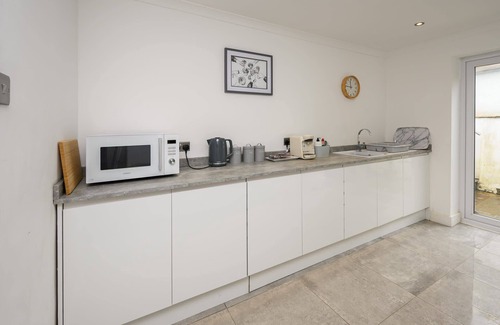 There is a fully equipped kitchen with a washing machine, oven, hob, microwave, kettle and toaster etc.