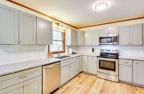 Discover the tranquility of Georgia when you stay at this vacation rental in Tiger, just outside Clayton. There's no shortage of nearby adventures — swim at Lake Burton or hike through Black Rock Mountain State Park. After, return to the 4-bedroom, 3-bath apartment home, where the fun is just beginning! Challenge your pals to a friendly foosball tournament before enjoying drinks on the deck or making s'mores around the fire pit.