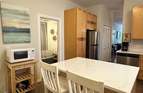 This comfortable 2 bedroom Guest Suite is located above an acclaimed food & wine spot in Roscoe Village - one of the city's premier neighborhoods - with 1000 square feet to relax and enjoy including amenities like a gas fireplace, 42' TV with HD channels and an Amazon Fire Stick to access your paid subscriptions, free wifi, comfortable couches, full kitchen, central HVAC, ceiling fans, washer/dryer, and more.