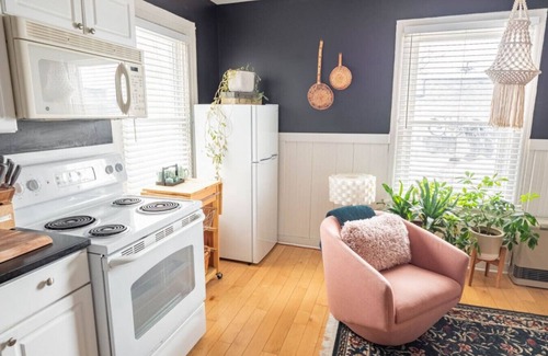 Cozy and stylish one bedroom apartment. Large kitchen, house plants, art, and smart TV with free Netflix.