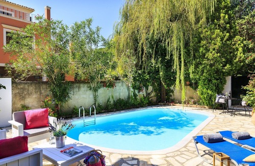 Diamantina, a piece of local history, is located just behind Agios Stephanos harbor, and is the first house built in the village in the 1800s. The present owner refurbished the house, which boasts a charming and cozy atmosphere. During the pool's construction, artefacts from 2,300 years ago were discovered, showing the area's continuous habitation since ancient times. Accessed by traditional Corfiot stone steps, the house has a charming walled courtyard, with a pool surrounded by roses, oleander and a mature willow. Agios Stephanos' shops, tavernas, and beach are right at your doorstep, making it an ideal spot for those who prefer to walk. Renting a small boat is recommended and can be moored just 100m from the house. Whether you're a summer sailor, history buff, or someone who loves a traditional town house, Diamantina is a unique and special place to stay.
