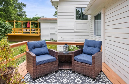 This cozy 1-bedroom sanctuary has been fully renovated into a charming 1 floor suite. Gypsy's Landing comes fully equipped with a modern kitchen, including everything you need to make a home cooked meal during your stay. Relax in the living room in front of the fireplace or enjoy the serenity of your private deck. Bring your passwords for streaming services on the Roku TV.
