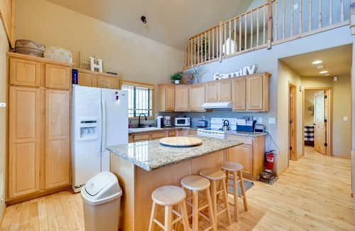 INDOOR LIVING: 2 Smart TVs, 1 Smart TV w/ Direct TV, wood-burning fireplace (wood not provided), island w/seating, board games