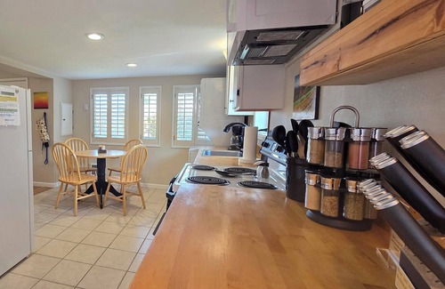 The home offers a spacious kitchen and is well supplied with updated appliances and all the cookware and gadgets you'd find at home - possibly even more!