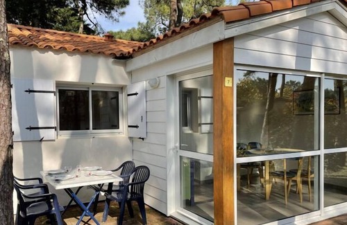 Here the scent of pine trees and salt water is in the air! The car-free holiday village is surrounded by pine trees on a tongue of land in front of the mainland, protected by the Ile de Ré in front of it. Only a few hundred meters from the Atlantic and the almost 10 km long sandy beach, in a 700 hectare nature reserve, the holiday village offers you bathing pleasure, relaxation, sporting activities and lots of variety. Your holiday home is functional and fully equipped and offers you all the comforts inside and out that you need for a successful holiday. Lazing around on the 15 square meter terrace and in the small garden area or spending time together on the playground, playing table tennis, pétanque or the themed evenings can be on the program, as can excursions to Les Sables d'Olonne, the Ile de Ré or to La Rochelle. There is also a bar, a restaurant and a small supermarket on site, where you can buy everyday necessities. In the area there are mini golf, boat trips, golf or the small center of La Faute-sur-Mer. Discover the long beaches, the coastal landscape and the huge pine forests on foot or by bike (rental possible on site).