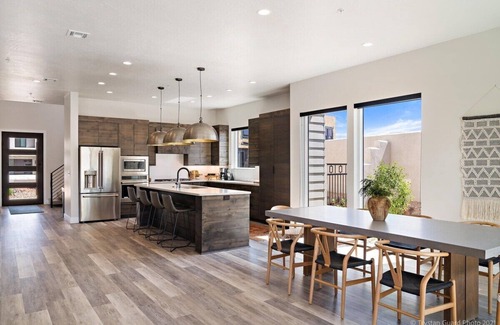 These units at the Coral Canyon Resort on the Eight near Zion are beautiful, fully furnished, and professionally decorated. You have access to the pickleball courts, pool, and spa at Town Center Resort, plus you have a private pool and hot tub on the patio. On the rooftop terraces, you will also find patio furniture to lounge in and enjoy the beautiful view of Pine Valley Mountain and Red Cliffs National Conservation Area over your private fire pit.