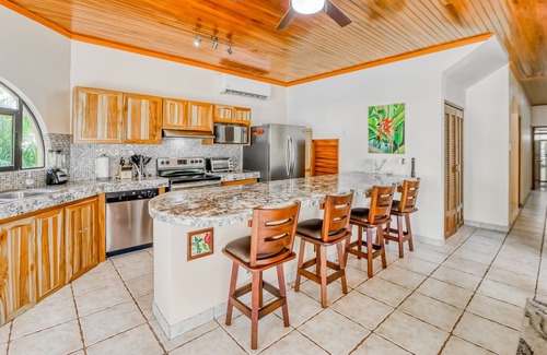 Located midway between the stunning beach of Jaco and the famous Manuel Antonio National Park, this Esterillos Este getaway is just waiting to assist in making the best memories with loved ones! Be sure to pack your favorite swimsuits, as you will have direct beach access mere steps from your backdoor and a private pool to take a quick dip when you need relief from the warm sunshine. Though everyone will want to lounge outside, the interior of this retreat will spoil each guest in no time with high-end furnishings, teakwood finishes, and a wonderful main suite with an ocean view balcony. Plus, the fully equipped kitchen, dining area, and large living room will make entertaining a breeze. Don't worry about being disconnected either, as the free high-speed WiFi has you covered for sharing memories on social media, streaming favorite movies, and getting remote work done if need be.