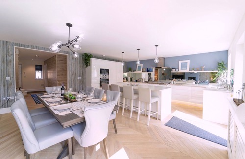 Upon arrival, you're greeted by the light and airy open-plan kitchen and dining room. It is likely to be here where most will start and end their day, so the addition of a coffee machine, island breakfast bar and comfortable seating really helps to keep everyone comfortable and well looked after. From here, you're able to access the study, games room or, via the french doors, the enclosed rear garden. It is very much the hub of the house.