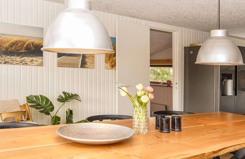 In the middle of the dune landscape, only approx. 600 meters from the North Sea at Bjerregård, you will find this cottage with i.a. table football and exercise bike as well as free wireless internet for entertainment. The house is furnished with a well-equipped kitchen in open connection with the combined living and dining room. From the living room there are two steps down to two of the bedrooms, both of which are furnished with double beds. In addition, there are two more bedrooms in the house, both with bunk beds for two people. The house's activity room is separated from the living room by a glass door and a window section. In addition, there is a guest toilet and a bathroom with shower. In addition, there is a radio, TV with satellite dish, dishwasher, washing machine and dryer. On a cool summer evening, you can sit in the living room furniture and look out at the surrounding dunes while relaxing by the wood stove. Not for rent to youth groups. A refundable deposit might be charged closer to your check-in date. This deposit covers utilities consumed during your stay and any additional services that may be taken. The final amount will be adjusted based on actual meter readings, actual usage of extra services, and any remaining balance will be refunded within 21 days after checkout.