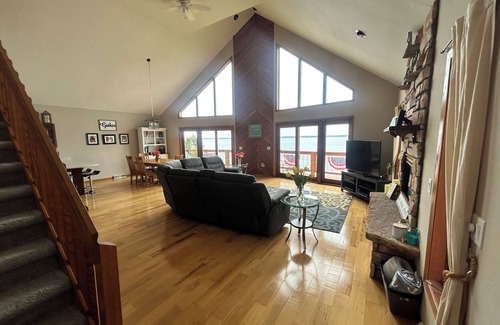 Start your day with a beautiful sunrise on the lake and end the day with a gorgeous sunset while enjoying a campfire on the lakeshore. Beautiful Lake house for rent $950 per night, available July 20- 28th …3 bedrooms and loft area…queen bed in each bedroom and 1 queen futon and 2 twin beds in loft, 2 full baths, 2 living rooms and large patio and fire pit. Large tvs in bedrooms and living rooms. 2 kayaks are also available for use. 15 passenger pontoon with captain available for extra charge. 10 miniute drive to EAA grounds.