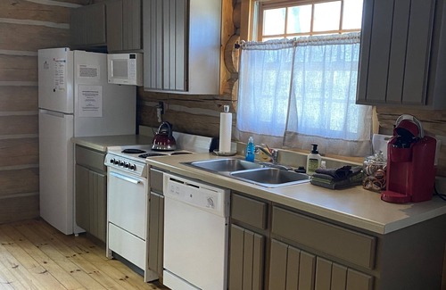 The cabin consists of a natural log great room finished with a locally sourced hardwood floor and welcoming rugs, with sleeping alcove on the first floor. In the sleeping alcove there is a comfy queen sized bed with welcoming sheets and bedding. There is a wall length linen privacy curtain if you would like to use it -- great if you want to read by the fire and your significant other wants to sleep! On the first floor is a full bathroom with walk in shower, complete kitchen with dishwasher and full sized appliances and living area with wood burning fireplace. The loft stairs are steep with handrails, but perfectly safe. The loft is definitely not suitable for small children or people with mobility issues. The stairs lead to a loft area with two twin beds plus door to private second floor deck. Amenities include large fire pit outdoors, generous front porch for enjoying the night air, wood burning fireplace, completely wooded 1.5 acre property, Firewood is not provided by us but we do have local firewood there that is for sale by a lovely local company -- or buy your own locally. Spectrum cable internet, streaming television with dvd player and internet/wifi. The company Mosquito Squad sprays the acreage with people and pet friendly spray to keep the mosquitos and ticks under control.