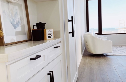 When you arrive at the elegant beach front villa, you will enter to an open concept area with a full kitchen and a cozy living area with fantastic views of the sea.