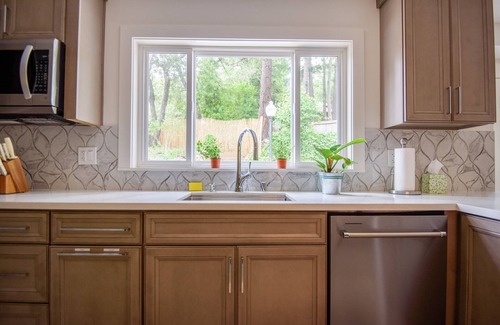 Nestled in a tranquil grove of trees, this contemporary two-story vacation home is a prime spot to enjoy wine country living. Nestled in a wooded area, this chic, contemporary vacation rental offers an ideal spot to host up to 10 people. It features 5 bedrooms, 3 full bathrooms, and approximately 2,700 square feet of open-plan living space. The fully equipped kitchen and al fresco patio furniture make vacationing a breeze.
