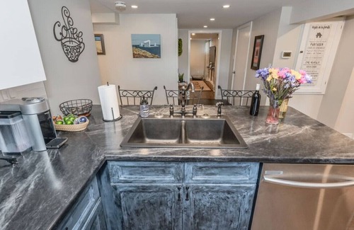 From the front of your building you will find yourself looking at the historic armory, now a very convenient liquor store if you so wish to indulge. Our Gingerbread House host the Sugar Skulls Ice Cream Speaking of which is part of a totally renovated two bedroom apartment with its century old accent walls. You will find each room is carefully designed for comfort. Even the family room has a sofa bed for extra guests. The renovated bathroom has a modern clean look . come stay at our Gingerbread house where your biggest regret will be not staying long enough.
